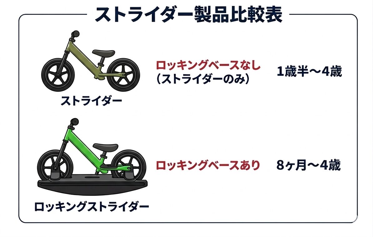 A. お子さんの年齢が1歳半以降はストライダー、1歳前後ならロッキングストライダーがおすすめ!